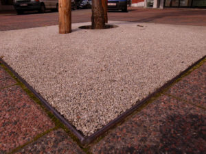 Terradec Solid is een systeem voor het plaatsen van een waterdoorlatende afwerking van gebonden granulaten waarbij een zwaardere belasting verwacht wordt zoals parkings & opritten.